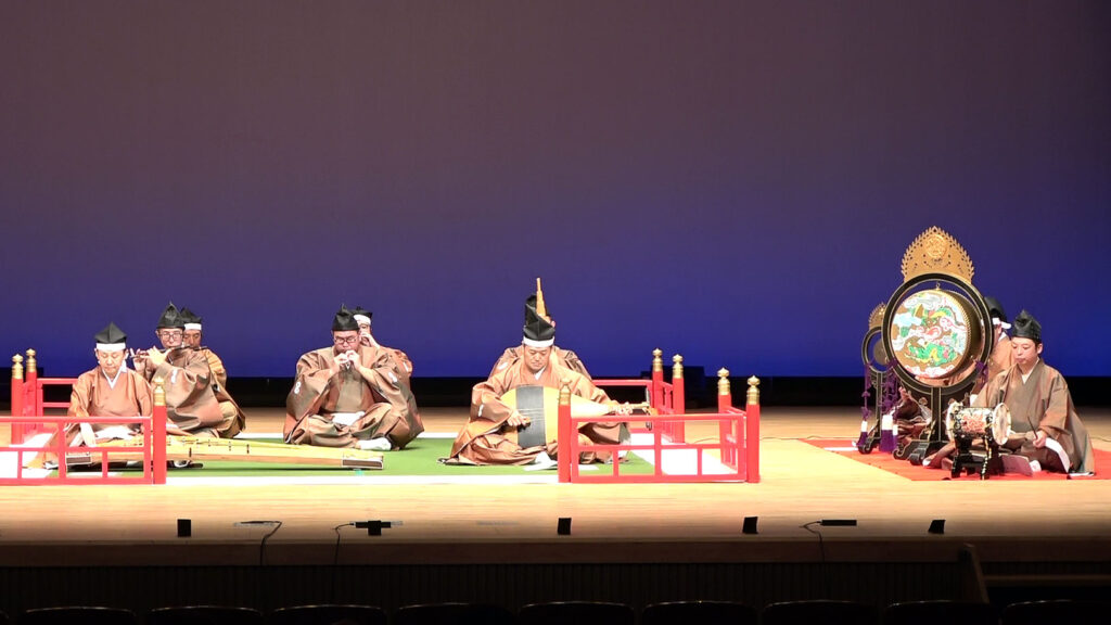11月15日(土)日野町文化祭にて、日野町民会館わたむきホール虹・大ホールで日野雅楽会が管弦・越天楽と、舞楽・蘭陵王の公演を行わせていただき、主宰の後藤まりが初めて蘭陵王の舞人を務めさせていただきました。楽太鼓、鉦鼓、鞨鼓の楽人も打ち物初挑戦。